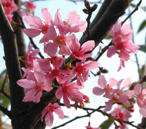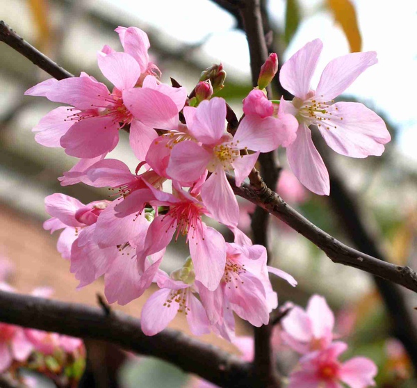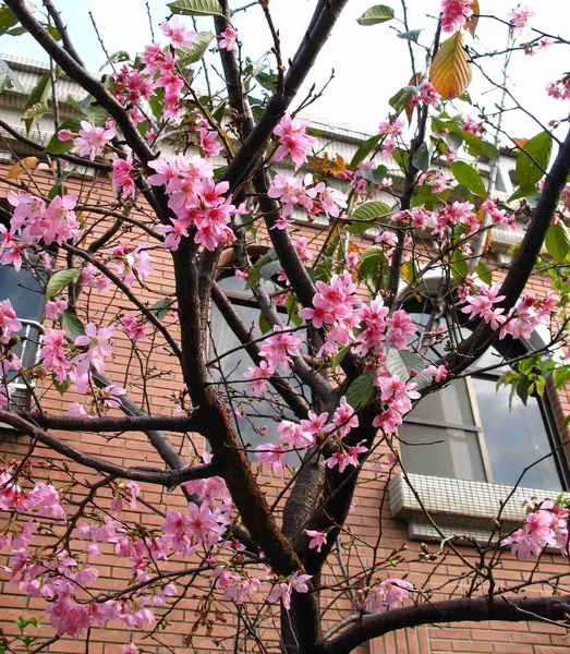 去年老師給我一株櫻花種在自家前院,已有一公尺高了,現在葉子掉光了,但沒冒出半朵花...嗯~期待它明年會開花。